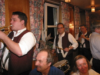 Am 11. März 2004 feierte unser Gründungsmitglied und langjähriger Baritonist und Kassier Emil Kötzel, außerdem Bürgermeister der Gemeinde Gallmersgarten, seinen 50. Geburtstag. Zwei Tage später lud er Verwandte, Freunde, Nachbarn und natürlich die Blaskapelle Steinach/Ens zu seiner Feier in den Gasthof Sämann ein. Es wurde ausgezeichnet gegessen und lange und feuchtfröhlich gefeiert. Natürlich ließen wir es uns nicht nehmen, ihm ein Ständchen zu überbringen! |